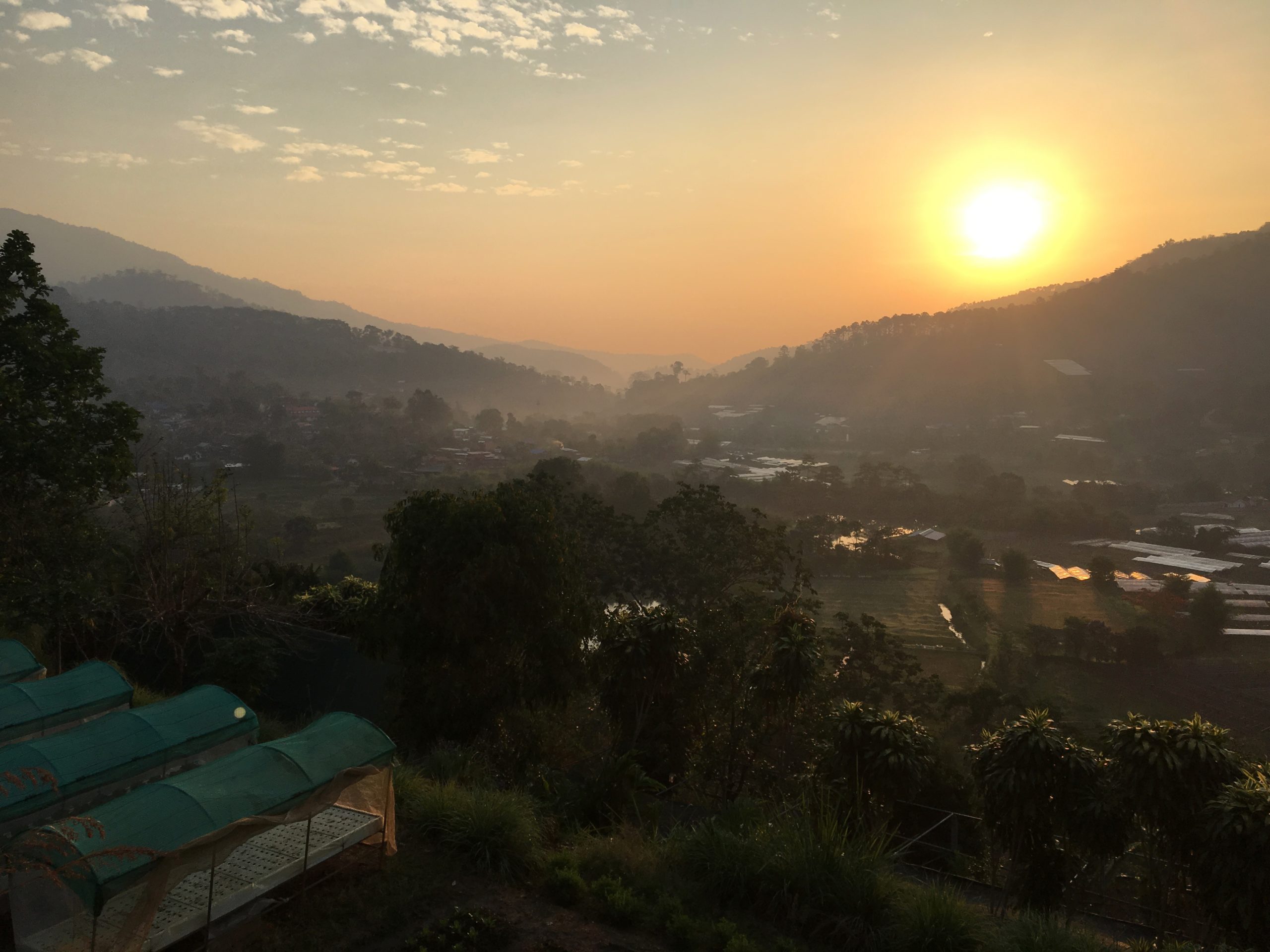 Kristy and I recently came back from a writing retreat in the mountains of Chiang Mai. We stayed in this amazing hotel on top of a mountain, only accessible by a steep, winding road. It was as incredible as it sounds, with views that overlooked the entire valley. It would have been extra beautiful if the air had been clear of smoke, but as it was, we experienced a different kind of “breath taking”—like choking on the ash flying through the air.